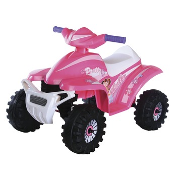 De elektrische roze quad is voorzien van een eenvoudige handbediening. Er kan een maximale snelheid van 3 km/uur behaald worden. De elektrische quad is voorzien van een oplaadbare 6 volt accu.