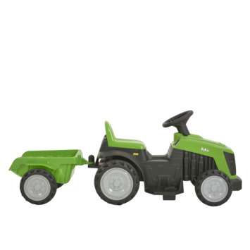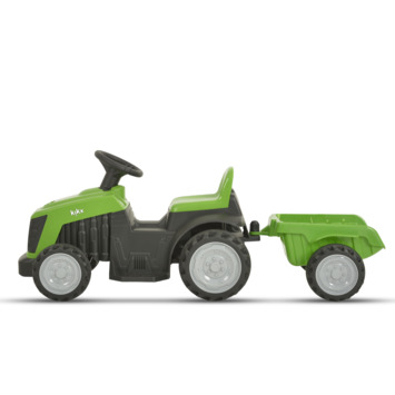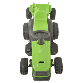 Met deze stoere Elektrische tractor kunnen kinderen rondrijden met een maximale snelheid van 2,5 km/u. De tractor is uitgevoerd met een afneembare aanhangwagen. Met het voetpedaal komt de tractor in beweging en met een schakelaar op het dashboard stel je in of hij vooruit, of achteruit moet rijden.