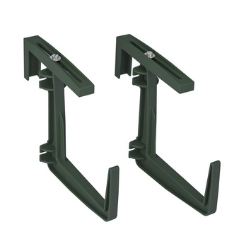 Elho biedt het meest uitgebreide assortiment haken en rekjes om uw balkonbakken en bloempotten op te hangen aan het balkon of aan de muur. Deze groene kunststof balkonbakhaken zijn eenvoudig te verstellen, zodat ze perfect aansluiten op de dikte van uw balkonrailing. Bovendien is het materiaal door de dubbele coating optimaal beschermd tegen vocht. De balkonbakhaak type 1 is geschikt voor de Berlin en Green Basics balkonbakken van Elho. Hierbij mag de dikte van de balkonrailing variëren tussen 1 en 6,5cm. Het maximale draaggewicht van deze set balkonhaken is 15kg.