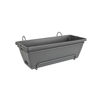 De grijze kunststof Barcelona all-in-1 balkonbak van 50 cm van Elho heeft alles in 1: balkonbak, balkonrek en handige schotel. Bovenal kunt u met deze fraaie balkonbak uw balkon groener en aangenamer maken in luttele seconden. De balkonbak is bovendien heel praktisch te gebruiken, dankzij de opening aan de zijkant voor het water geven. De balkonbak is gemaakt van duurzame kunststof en gaat dus jarenlang mee. Kortom: een balkonbak om lang plezier van te hebben en een aanwinst voor elk balkon.