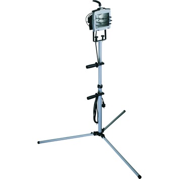 De Elro bouwlamp TL640A is een zware en sterke lamp met statief. De lamp is goed geschikt voor zware klussen. Het statief is verstelbaar van 1 tot 1,75 meter en heeft drie poten. De lamp wordt beschermd door veiligheidsglas en een metalen spijlen. De kabel is maar liefst 5 meter lang. U kunt de lamp zowel binnenshuis als buitenshuis gebruiken. De halogeenlamp heeft een wattage van 400W.