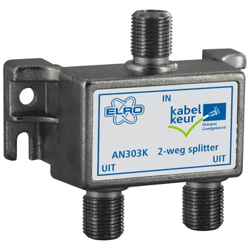 De Elro coax 2-weg-splitter splitst uw antennesignaal. Op die manier is het mogelijk om het internet- en telefoniesignaal van elkaar te scheiden. U sluit de 2-weg-splitter aan met F-connectoren, zodat u signaalverlies zo veel mogelijk voorkomt. De splitter is voorzien van een metalen behuizing en viervoudig HF (Hoog Frequent) afgeschermd. Ook beschikt de splitter over KabelKeur. Het is niet voor niets dat UPC/Ziggo deze splitter aanbeveelt. U gebruikt de coaxsplitter van Elro, die inclusief F-connectoren wordt geleverd, met een coaxkabel van 7mm.