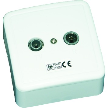Deze opbouw antennecontactdoos heeft een radio- en TV-uitgang. De contactdoos kunt u overal in uw huis op de muur plaatsen en is te gebruiken als rijg- en einddoos. Afscherming tegen stoorsignalen 75 dB.