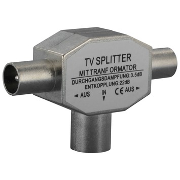 Met deze TV-splitter kunt u uw antenne signaal splitsen waardoor u twee TV's op één aansluiting kunt aansluiten, u kunt hiermee dus een extra TV aansluiting maken. Betere afscherming door metalen behuizing. Afscherming tegen stoorsignalen 75 dB.