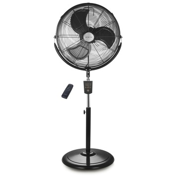 Voor een verkoelend moment op een warme dag heb je deze staande ventilator nodig. De staande ventilator heeft 3 ventilatorbladen die een verkoelende luchtstroom rondblazen. Daarnaast kan je de ventilator in 3 verschillende snelheden laten blazen. Zo kan je zelf kiezen hoeveel verkoelende lucht je rondgeblazen wil hebben. De kop van de ventilator heeft een afmeting van 45 cm en kan in verschillende hoeken frisse lucht rondblazen. Hierdoor kan je eenvoudig ook een grotere ruimte verkoelen. Ook is de staande ventilator in hoogte verstelbaar, heeft het apparaat een afstandsbediening en timer. De staande ventilator heeft een grote wijde voet, waardoor de ventilator stevig blijft staan. Kortom, met de Emerio Staande Ventilator met Timer Zwart 45x130cm kan je weer een frisse wind door je huis laten waaien.