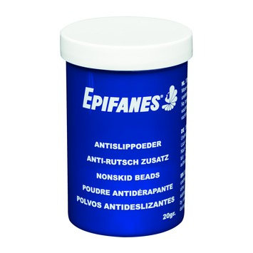 Het Epifanes antislip-poeder is het ideale poeder om een eigen kleur antislipverf te maken. Voeg 20 gram toe aan 750 ml Epifanes Mono-urethane Jachtlak en/of Epifanes Poly-urethane Jachtlak en u heeft antislipverf in uw eigen kleur. De lichtgewicht korrel zakt niet uit, geeft optimale antislipwerking aan het geverfde oppervlak en is niet scherp aan de voeten. Voor het aanbrengen van een antisliplaag op de aangebrachte ééncomponenten systemen op hout, staal, polyester en aluminium. Deze verpakking bevat 20 gram.