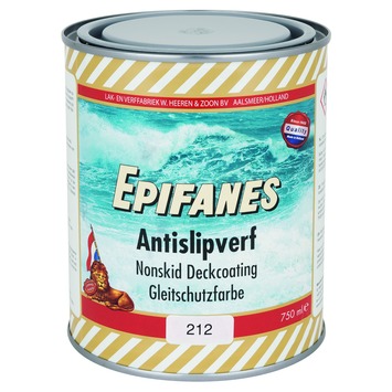 Epifanes Antislip is een ruwe dekverf voor de slipvaste afwerking van ééncomponenten verfsystemen op dekken en in gangboorden. De lichtgewicht korrel zakt niet uit, geeft optimale antislipwerking aan het geverfde oppervlak en is niet scherp aan de voeten. Voor het aanbrengen van een antisliplaag op de aangebrachte ééncomponenten systemen op hout, staal, polyester en aluminium.