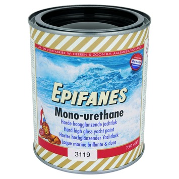 Epifanes Mono-urethane is een hoogglanzende, slijtvaste ééncomponenten jachtlak. Door zijn optimale dekking en glans beschermt de lak langdurig tegen diversen weer-en wateromstandigheden. Deze moderne harde jachtlak kenmerkt zich door de snelle harding en belastbaarheid. Voor nieuw werk op hout, staal, aluminium en polyester, voor binnen en buiten maar boven de waterlijn. Deze jachtlak kan zonder primer op een voorbehandelde gelcoat worden aangebracht. Ook geschikt voor onderhoud van bestaande ééncomponenten lak.