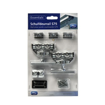 Met de Essentials schuifdeurrailset S75 staal kunt u een schuifdeurrailsysteem monteren. De set is geschikt voor deuren met een maximaal gewicht van 75kg. Per deur heeft u één schuifdeurrailset en één rail nodig. De schuifdeurrailset is ook verkrijgbaar in andere kleuren en met andere draagvermogens.