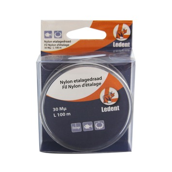 Wil je iets ophangen of vastbinden met een kleurloze draad? Dan heb je etalagedraad nylon 0,3 mm 100 meter van het merk Ledent nodig. Nylondraad is een synthetische vezel die bekend staat om zijn hoge treksterkte en goede knoopweerstand. Bovendien is het draad kleurloos, dus praktisch onzichtbaar, waardoor je het draad goed kunt gebruiken in bijvoorbeeld etalages. Dit draad is overigens ook goed bruikbaar als vislijn of als hobbymateriaal om sieraden mee te maken. Kortom: een sterke, elastische en multifunctionele draad die niet opvalt.