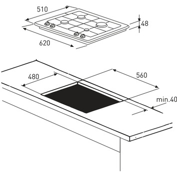 ETNA gaskookplaat A122VRVSA 62 cm