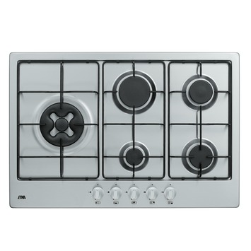 De gaskookplaat A137VWRVS van ETNA is een 5-pits kookplaat van RVS. De kookplaat bevat een wokbrander met geïntegreerde vonkontsteking en bandstalen pandragers en heeft een breedte van 74 cm.