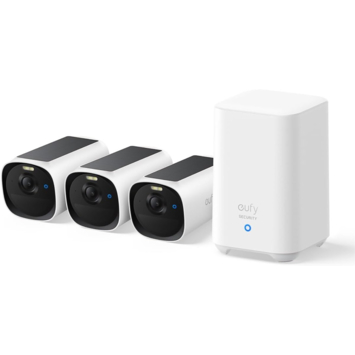 Je beelden worden lokaal opgeslagen op de meegeleverde HomeBase 2. Die heeft 16 GB interne opslag, uitbreidbaar tot 16 TB met een externe harde schijf (niet inbegrepen). Bedien de camera via Apple HomeKit, Alexa of Google Assistant voor eenvoudige spraakopdrachten. Let op: de EufyCam E40 werkt niet zelfstandig. Deze set bevat een HomeBase 2 en drie camera’s die samen een compleet systeem vormen, zonder abonnementskosten of cloudverplichting.