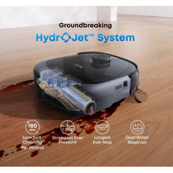 De Eufy Robotstofzuiger Omni E28 maakt schoonmaken eenvoudiger dan ooit. Met het HydroJet-systeem en een zuigkracht van 20.000 Pa verwijdert hij moeiteloos hardnekkig vuil, kruimels en dierenharen van elke vloer. De roterende moppen worden tijdens het dweilen continu gereinigd, zodat er geen vuilsporen achterblijven. Zo blijft je vloer hygiënisch schoon zonder dat je ernaar hoeft om te kijken.
