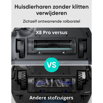 De Eufy RoboVac X8 Pro staat bekend om de krachtige reiniging waarmee de stofzuiger gemakkelijk vuil en vlekken verwijdert van de vloer. Met een ongeëvenaarde zuigkracht van 2 × 4000 Pa dankzij de Twin-Turbine technologie, verwijdert de Eufy X8 Pro moeiteloos diepgeworteld vuil en huisdierharen uit tapijten en stoffering. Deze krachtige prestaties zorgen voor een onberispelijk schoon huis. De zelf-ontwarrende rolborstel voorkomt dat haren vast komen te zitten, wat vaak voorkomt bij andere stofzuigers. Het grote zelf-leegstation biedt tot 45 dagen handenvrij schoonmaken, waardoor de stofzuiger ideaal is voor drukke huishoudens. De iPath-lasernavigatie zorgt voor efficiënte schoonmaakroutes en vermijdt obstakels, terwijl de AI.Map 2.0 technologie kaarten van je huis maakt en schoonmaakprocessen optimaliseert. Dit resulteert in een grondige schoonmaakbeurt met weinig moeite. De robot reinigt 100 vierkante meter vloeroppervlak op een volle batterij.