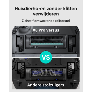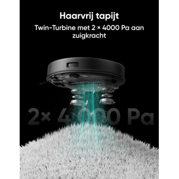 Eufy Robotstofzuiger X8 Pro levert indrukwekkende prestaties met zijn krachtige Twin-Turbine technologie, die een zuigkracht van 2 × 4000 Pa biedt. Deze robuuste zuigkracht zorgt ervoor dat stof, vuil en dierenharen grondig uit je tapijten worden verwijderd, zodat je vloerbedekking schoon en haarvrij blijft. De Eufy Robotstofzuiger X8 Pro is dus ideaal voor huishoudens met huisdieren of voor het grondig reinigen van tapijten.