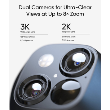 Beveilig je tuin of oprit met de Eufy Solo Cam S340. Deze weerbestendige camera kan maar liefst 360 graden draaien. De camera beschikt over een dubbele camera waarmee tot 8x inzoomen mogelijk is. Tevens schiet de lens de beelden in 3K kwaliteit, waardoor je de beelden haarscherp ziet. De camera beschikt over een sterke oplaadbare accu, wanneer de camera in de zon wordt geplaatst, verlengt dit de levensduur van de batterij tot bijna oneindig.
