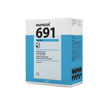 De Eurocol 691 poedertegellijm grijs 5 kg is eenvoudig aan te maken met leidingwater en kan binnen toegepast worden. Je kunt deze tegellijm gebruiken voor het verlijmen van keramische wand- en vloertegels, mozaïek en vlak donkergekleurd natuursteen. De Eurocol poeder tegellijm 691 is vochtbestendig en hierdoor geschikt voor toepassing in natte ruimtes. Deze lijm kan niet onder water (zwembaden) worden toegepast. Het verbruik van deze lijm is circa 1,2 tot 3,5 kg per vierkante meter afhankelijk van de vlakheid van de ondergrond en het type tegel. De lijm wordt geleverd in een verpakking van 5kg.