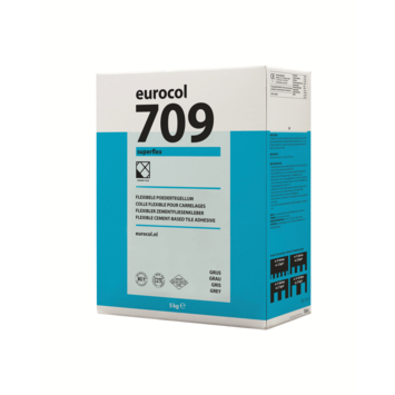 Eurocol 709 superflex poedertegellijm grijs 5kg is zeer geschikt voor het verlijmen van vloertegels, mozaïek en vlakke, natuursteen (niet verkleuringsgevoellig) op alle soorten ondergronden, zoals beton, hout, bestaand tegelwerk, granito en vloeren voorzien van vloerverwarming.