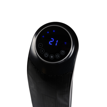 Het moderne zwarte ontwerp van de HI-Tower 2200 Wifi past perfect in elke woonruimte. Het LED-scherm geeft duidelijk de temperatuur en instellingen weer. Met zijn slanke vorm en gemakkelijk verplaatsbare ontwerp is deze kachel zowel stijlvol als functioneel.
