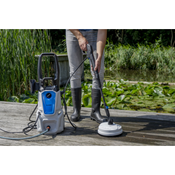 De Eurom Force 1801 is een hogedrukreiniger die ideaal is voor om het huis. Deze hogedrukreiniger komt standaard met een terrasreiniger, vlakstraalnozzle en een roterende vuilfrees. Met 1800 Watt, een maximale druk van 145 bar en een wateropbrengst van 330 liter per uur zal de Force 1801 zijn taak zeker volbrengen. De trolley zorgt er bovendien voor dat je de hogedrukreiniger makkelijk verplaatst. De opberg haspel zorgt er bovendien voor dat de afgekoppelde slang handig is op te bergen.
