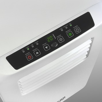De Eurom mobiele airco PAC 9.2 is met zijn vermogen van 2600 watt en 9000 BTU geschikt om ruimtes tot 90m3 te verkoelen. De airco is instelbaar in 2 snelheden en is ook te gebruiken als luchtontvochtiger. Hij ontvochtigt tot 1,2 liter per uur door middel van de luchtafvoerslang. De PAC 9.2 wordt geleverd met afstandsbediening en er zit een timer op.