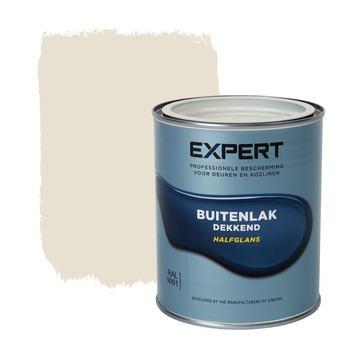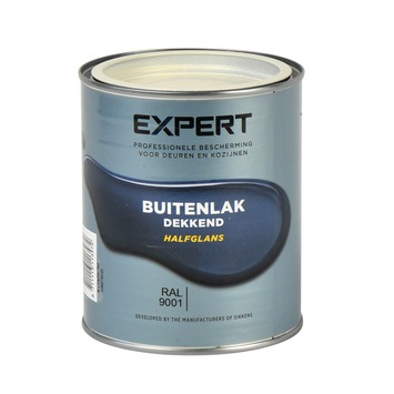 Expert buitenlak RAL 9001 crème wit halfglans 750 ml is een terpentineverdunbare buitenlak. De halfglans buitenlak is een één-pot-systeem en kan direct op kaal hout of over bestaande terpentineverdunbare dekkende verf- of beitslagen toegepast worden. Expert halfglans lak is goed vullend en vochtregulerend waardoor al het houtwerk zoals deuren, kozijnen, luiken en daklijsten zeer duurzaam beschermd wordt. De inhoudsmaat is 750 ml.