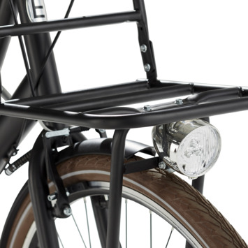 De herenfiets maakt gebruik van een achteruittraprem en is uitgerust met een dubbele standaard en voor- en achterverlichting. Daarnaast heeft de transportfiets drie versnellingen. Kortom, een fiets die geschikt is voor school- en werkverkeer maar ook voor even boodschappen doen.