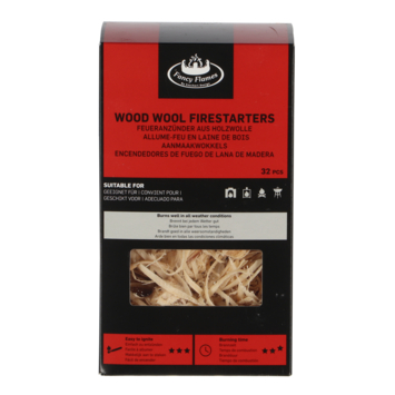 Fijne houtwolblokjes. Ze brandwn snel en lang waardoor het hout goed ontbrandt.