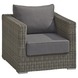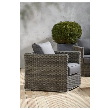 Wicker is materiaal van kunststof dat erg goed tegen weer kan. Wij adviseren het meubel te reinigen met natuurlijke zeep en een zachte borstel.