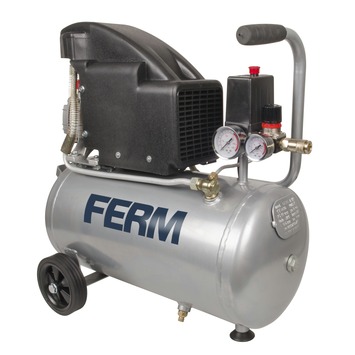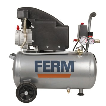 De FERM compressor CRM1045 is een krachtige machine die zonder moeite autobanden, voetballen en opblaasboten met lucht vult. De oliehoudende compressor met een tankinhoud van 24 liter heeft een universele snelkoppeling (DIN/Orion) van ¼ inch en is eenvoudig te combineren met diverse luchtgereedschappen zoals bijv. een tacker of een verfspuit. De werkdruk is instelbaar van 0 tot 8 bar. Met 2 toegevoegde manometers kun je zowel de tankdruk als uitlaatdruk exact meten. Dankzij de 2 wielen is de compressor eenvoudig verplaatsbaar en werk jij comfortabel aan al je klussen.