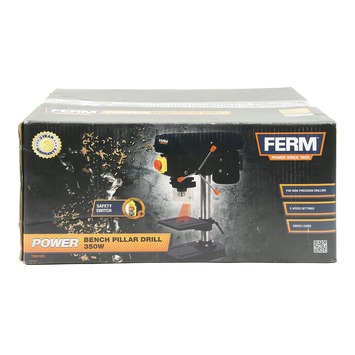 De FERM tafelboormachine TDM1025 met 350 Watt-motor is een stabiele kolomboormachine met een 13mm boorkop. De boormachine is voorzien van een transparante beschermkap en veiligheidsschakelaar om goed en veilig te kunnen werken. De werktafel is eenvoudig in hoogte te verstellen en is bovendien in te stellen onder hoeken van -45° tot 45°. De boor heeft 5 snelheden zodat u het optimale resultaat behaalt bij verschillende materialen en boordiameters. De kruislaser biedt goede geleiding, zodat u snel en nauwkeurig kunt werken. De werkstukklem TDA1013 is los verkrijgbaar. Dit alles maakt de tafelboormachine TDM1025 een genot om mee te werken.
