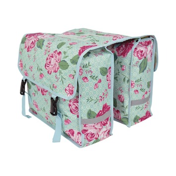 De dubbele fietstas Flori Black Fiori is een waterafstotende fietstas voor achterop de fiets. De basiskleur is zwart, maar hij heeft een all-over bloemendessin. De tas heeft een inhoud van 30liter en is te bevestigen met riempjes. Fietstas Flori Black Fiori past op heel veel fietsen, is handig en zorgt voor een vrolijk accent.