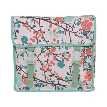Deze dubbele fietstas is gemaakt van watervast polyester. De tassen zijn eenvoudig te monteren op de bagagedrager en voorzien van een snelsluiting. Daardoor zijn ze dus heel handig in het gebruik. Ook zijn ze uitgerust met reflectie voor betere zichtbaarheid en dus meer veiligheid. De tassen hebben een blauw bloemmotief.