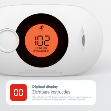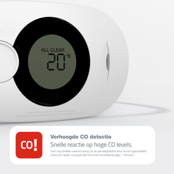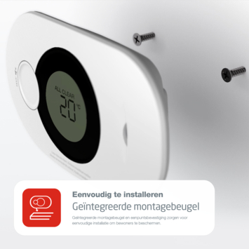 Deze FireAngel Digitale Koolmonoxidemelder inclusief 10 jaar niet vervangbare batterij detecteert koolmonoxide.( CO) Deze AE3322 koolmonoxidemelder is voorzien van een digitaal display. Op het LCD-scherm kun je het CO-niveau aflezen, afhankelijk van het type melding verandert de kleur van het scherm. Bij detectie geeft het apparaat een duidelijk hoorbaar alarm van 85 decibel af. De melder is voorzien van een test-/pauzeknop. Deze melder heeft tevens een extra optie om het apparaat te gebruiken als digitale thermometer. De melder wordt geleverd Inclusief montagemateriaal (schroeven en plugjes) en ingebouwde batterij (levensduur 10 jaar). Deze FireAngel koolmonoxidemelder is EN50291 gecertificeerd.