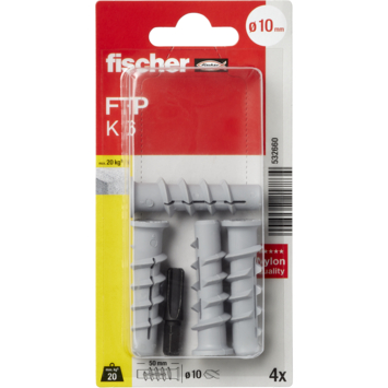 Fischer cellenbetonanker FTP K 6, 4 stuks zijn 50 mm lang. Maximaal te belasten tot 20 kg. Gebruik voor het boren van het gat een boor van Ø 10 mm. Te gebruiken in combinatie van schroeven van Ø 5-6 mm. Handig voor het ophangen van je brievenbus, schilderij, lampen en bewegingssensoren. Geleverd als 4 cellenbetonankers.