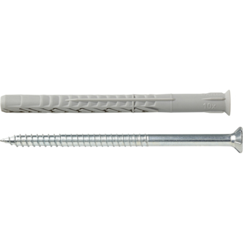 De fischer Constructieplug SXRL T 10x120 mm met de fischer zeskant-borgbout met T40-opname is goedgekeurd voor meervoudige bevestigingen van niet-dragende systemen in metselwerk, beton en cellenbeton. In metselwerk van geperforeerde baksteen zorgen de spreidzones van de plug voor een gelijkmatige krachtverdeling, in cellenbeton en massief materiaal voegen ze zich samen tot een lang spreidelement. Met de borgbout van gegalvaniseerd staal is de constructieplug zeer geschikt voor bevestigingen in de interieurbouw, zoals voor ramen, kapstokken, hangkasten of televisieconsoles. Inhoud 4 pluggen.
