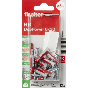 Fischer DuoPower plankbevestiging 6x30mm set compleet met schroef 12 stuks