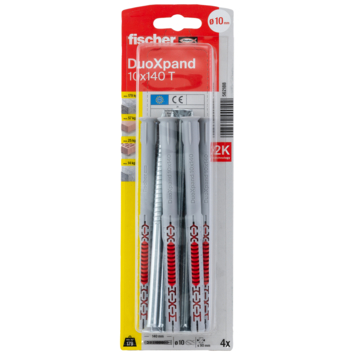 De fischer Constructieplug DuoXpand met dubbele verankeringsdiepte is gecertificeerd voor meervoudige bevestiging van niet-dragende systemen in beton, metselwerk én cellenbeton. Dankzij de speciale geometrie en het gebruik van verschillende kunststoffen, past de plug zich perfect aan de ondergrond aan. De DuoXpand met verzonken kop is zeer geschikt voor het bevestigen van houten aanbouwdelen in metselwerk of beton.