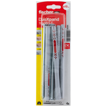 De fischer Constructieplug DuoXpand met dubbele verankeringsdiepte is gecertificeerd voor meervoudige bevestiging van niet-dragende systemen in beton, metselwerk én cellenbeton. Dankzij de speciale geometrie en het gebruik van verschillende kunststoffen, past de plug zich perfect aan de ondergrond aan. De DuoXpand met verzonken kop is zeer geschikt voor het bevestigen van houten aanbouwdelen in metselwerk of beton.