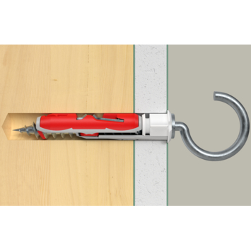 De Duotec plug met schroefhaak is geschikt voor zowel voor- als doorsteekmontage, en heeft voor massieve materialen dezelfde werking als de Duopowerplug. De plag is uitermate geschikt voor alle hollewandmaterialen. Maximale ruimte achter de holewand is inclusief te bevestigen materiaal 12 cm. De minimale schroeflengte is 50 mm voor doorsteekmontage in hollewand. De combinatie van 2 materialen en 3 werkingsprincipes maakt de DUOTEC de juiste plug voor alle omstandigheden. Na het aansluiten van de montagering breekt u de plug op de juiste lengte af. Verpakking bevat 2 pluggen.