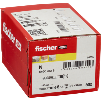 Deze Fischer-nagelplug N6x60Z, verpakt per 50 stuks, gebruikt u voor het monteren van houten regelwerk op verschillende materialen. Denk aan betonnen wanden, wandverbindingen en metalen profielen. Gebruik voor het boren van het gat waarin u de nagelplug aanbrengt, een boor met een diameter van 6mm. Vervolgens brengt u de 60mm lange nagelplug aan en schroeft u de schroef van 65mm met een diameter van 4mm erin. Na montage is deze nagelplug met een lengte van 6cm, afhankelijk van het materiaal waarin u de plug bevestigt, te belasten tot maximaal 20kg. U koopt de Fischer-nagelplug N6x60Z per 50 nagelpluggen.