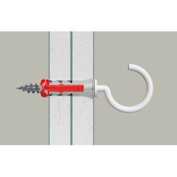De Duopowerplug 10x50 mm met grote ronde geplastificeerde waslijnhaak is geschikt voor zowel voor- als doorsteekmontage. Meer materiaal in de plug voor nog meer spreiding en nóg hogere belastbaarheid. De combinatie van een harde en zachte kunststof garandeert een optimaal gebruiksgemak, zeer gemakkelijke plaatsing en bovendien een duidelijke feedback wanneer de plug correct geplaatst is. Geschikt voor hout- , spaanplaat- én stokschroeven. Schroeflengte = pluglengte + dikte aanbouwdeel + 1x schroefdiameter. In het geval van plaatmateriaal dient het gladde deel van de schroef niet langer te zijn dan de dikte van het aanbouwdeel. De combinatie van 2 materialen en 3 werkingsprincipes maakt de DUOPOWER de juiste plug voor alle omstandigheden. De plug activeert het optimale werkingsprincipe - spreiden, vouwen, knopen - afhankelijk van de ondergrond. Best mogelijke terugkoppeling van de plug, het is duidelijk voelbaar wanneer de schroef goed is aangedraaid. De korte en compacte plug staat voor minimale boortijd en bespaart daarmee materiaal én tijd. De dunne kraag voorkomt dat de plug in het boorgat verdwijnt bij gebruik in holle wanden, terwijl doorsteekmontage nog steeds mogelijk blijft.De vertande anti-rotatievleugels voorkomen dat de plug tijdens montage in het boorgat meedraait. Verpakking is 2 stuks.