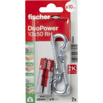 Fischer Universeelplug DuoPower 10x50mm met ronde haak 2 stuks