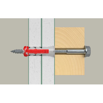 De Duopowerplug 14x70 mm is geschikt voor zowel voor- als doorsteekmontage. Meer materiaal in de plug voor nog meer spreiding en nóg hogere belastbaarheid. De combinatie van een harde en zachte kunststof garandeert een optimaal gebruiksgemak, zeer gemakkelijke plaatsing en bovendien een duidelijke feedback wanneer de plug correct geplaatst is. Geschikt voor hout- , spaanplaat- én stokschroeven. Schroeflengte = pluglengte + dikte aanbouwdeel + 1x schroefdiameter. In het geval van plaatmateriaal dient het gladde deel van de schroef niet langer te zijn dan de dikte van het aanbouwdeel. De combinatie van 2 materialen en 3 werkingsprincipes maakt de DUOPOWER de juiste plug voor alle omstandigheden. De plug activeert het optimale werkingsprincipe - spreiden, vouwen, knopen - afhankelijk van de ondergrond. Best mogelijke terugkoppeling van de plug, het is duidelijk voelbaar wanneer de schroef goed is aangedraaid. De korte en compacte plug staat voor minimale boortijd en bespaart daarmee materiaal én tijd. De dunne kraag voorkomt dat de plug in het boorgat verdwijnt bij gebruik in holle wanden, terwijl doorsteekmontage nog steeds mogelijk blijft. De vertande anti-rotatievleugels voorkomen dat de plug tijdens montage in het boorgat meedraait. Verpakking is 2 stuks.