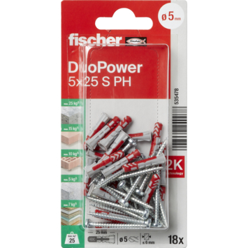 Fischer Universeelplug DuoPower 5x25mm met bolkopschroef 18 stuks