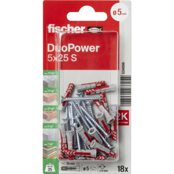 Fischer Universeelplug DuoPower 5x25mm met schroef 18 stuks