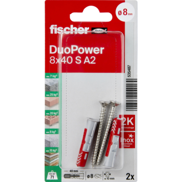 Fischer Universeelplug DuoPower 8x40mm met RVS schroef 2 stuks