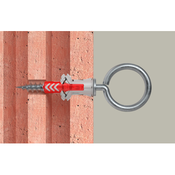 De Duopowerplug 8x40mm met witte ooghaak is geschikt voor zowel voor- als doorsteekmontage. Meer materiaal in de plug voor nog meer spreiding en nóg hogere belastbaarheid. De combinatie van een harde en zachte kunststof garandeert een optimaal gebruiksgemak, zeer gemakkelijke plaatsing en bovendien een duidelijke feedback wanneer de plug correct geplaatst is. Geschikt voor hout- , spaanplaat- én stokschroeven. Schroeflengte = pluglengte + dikte aanbouwdeel + 1x schroefdiameter. In het geval van plaatmateriaal dient het gladde deel van de schroef niet langer te zijn dan de dikte van het aanbouwdeel. De combinatie van 2 materialen en 3 werkingsprincipes maakt de DUOPOWER de juiste plug voor alle omstandigheden. De plug activeert het optimale werkingsprincipe - spreiden, vouwen, knopen - afhankelijk van de ondergrond. Best mogelijke terugkoppeling van de plug, het is duidelijk voelbaar wanneer de schroef goed is aangedraaid. De korte en compacte plug staat voor minimale boortijd en bespaart daarmee materiaal én tijd. De dunne kraag voorkomt dat de plug in het boorgat verdwijnt bij gebruik in holle wanden, terwijl doorsteekmontage nog steeds mogelijk blijft. De vertande anti-rotatievleugels voorkomen dat de plug tijdens montage in het boorgat meedraait. Verpakking is 2 stuks.