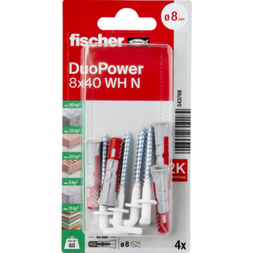 Fischer Universeelplug DuoPower 8x40mm met witte schroefduim 4 stuks